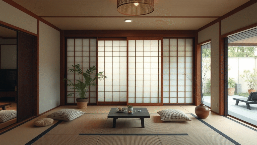 Using natural tones and simple lines, interiors achieve balance without clutter. Subtle contrasts—between wood and paper, light and shadow—create visual depth. Consequently, rooms feel spacious and soothing despite their minimal decor.