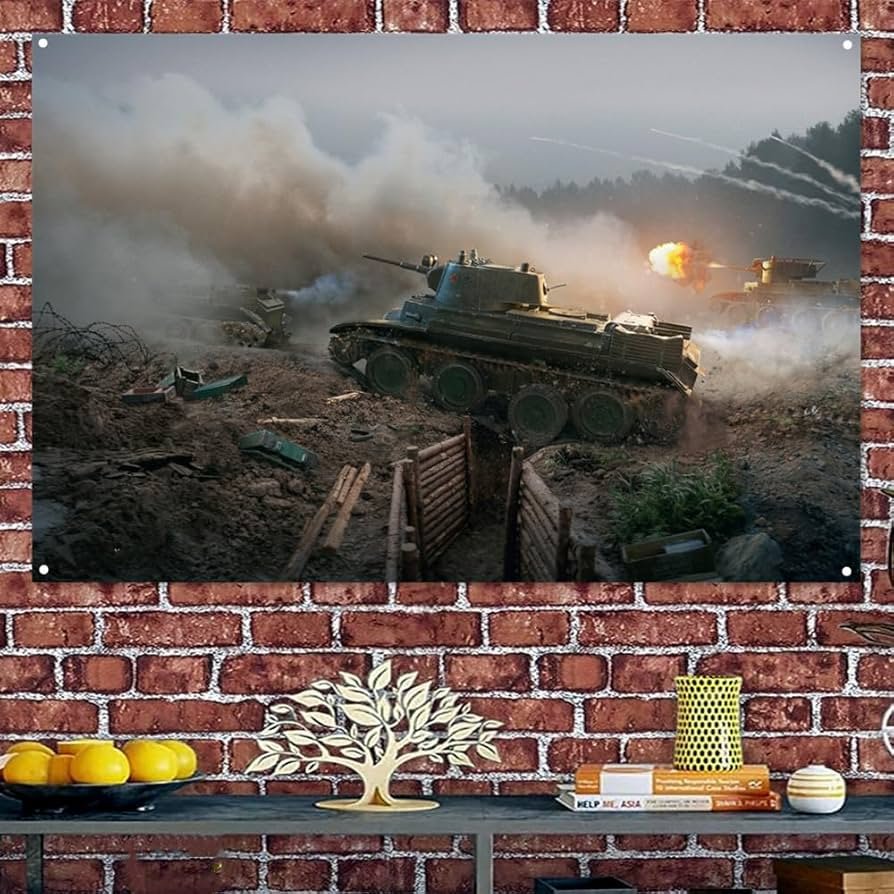 | Military fabric banners / flag-inspired décor — ZZXYHM Military Vehicle Wall Art 20×30″ Canvas Poster** Amazon Ireland | Not physically fabric, but the motif can match textile banners. |